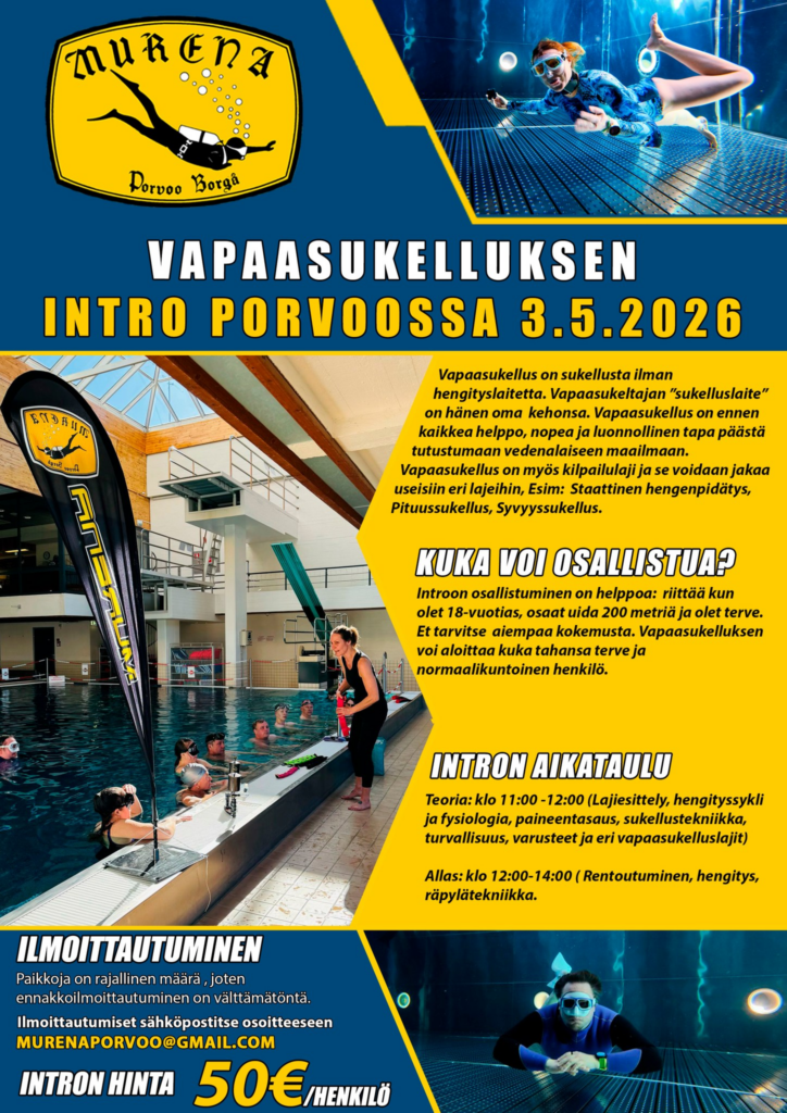Haluatko kokeilla vapaasukellusta? Nyt siihen on loistava mahdollisuus Porvoossa!
